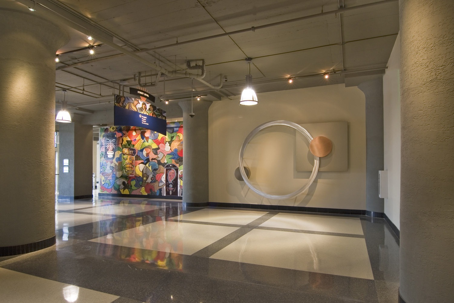 Working with six other architecture firms and five developers, Collaborative Design Group served as the project’s coordinating architect, and architect and structural engineer of record. The $190 million, one million sf project included the restoration and reuse of the historic Sears building, transforming it into a mixed-use facility with spaces for retail, restaurant, office, and housing. Work included substantial urban planning and site coordination with multiple local and Federal agencies to planning for the construction of a new hotel, pedestrian promenade, Midtown Greenway development, and city transit center. An enclosed bridge over the Midtown Greenway provides pedestrian access to Abbott Northwestern Hospital, which is operated by Allina Hospitals and Clinics, the major office tenant in the renovated Sears building. A parking garage was also constructed on the site, edged on two sides by affordable, for-sale townhomes.