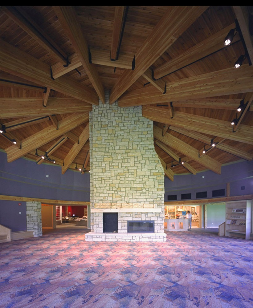 The new 10,500 sf interpretive building is located on a 62 acre historic site on Minnesota’s Snake River, the actual location of the North West Company’s post. A strong natural presence of light, wood, and organic materials extend from the site into and throughout the building, which was designed to be highly sustainable, with earth sheltering, passive solar capacity, and renewable and sustainably harvested materials used extensively. It features a great room, fireplace, retail space, and exhibits that explore how the fur trade shaped the region. The Center also helps direct and control the visitors to the site, where previously a large area was subjected to human traffic impact. Related amenities developed as part of the project include a picnic shelter, an improved trail network, and enhanced riverside landing.