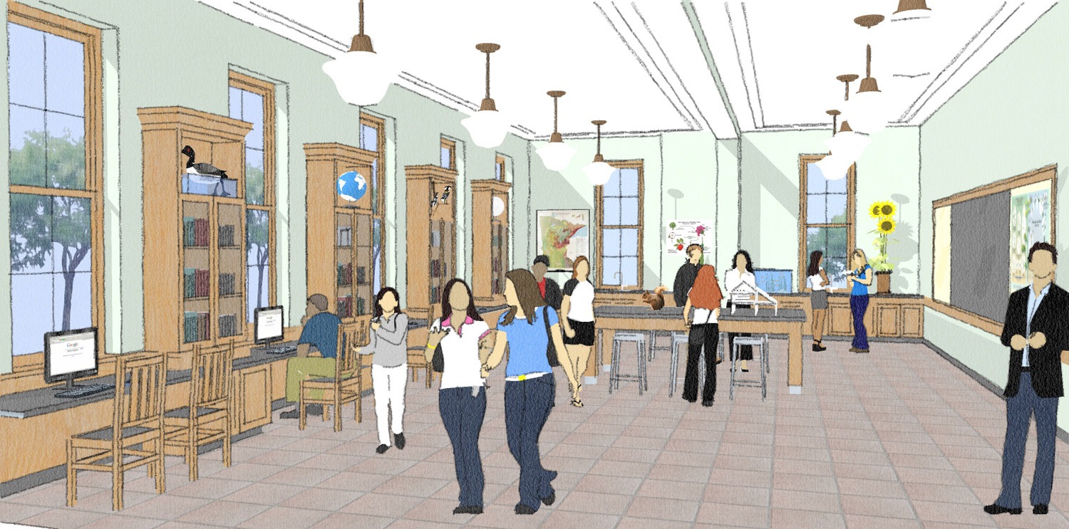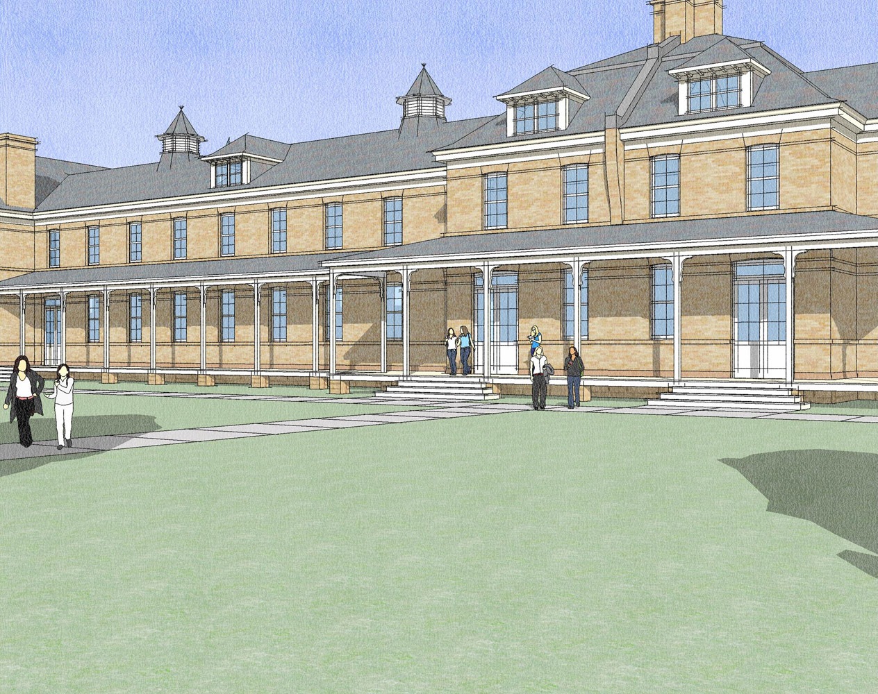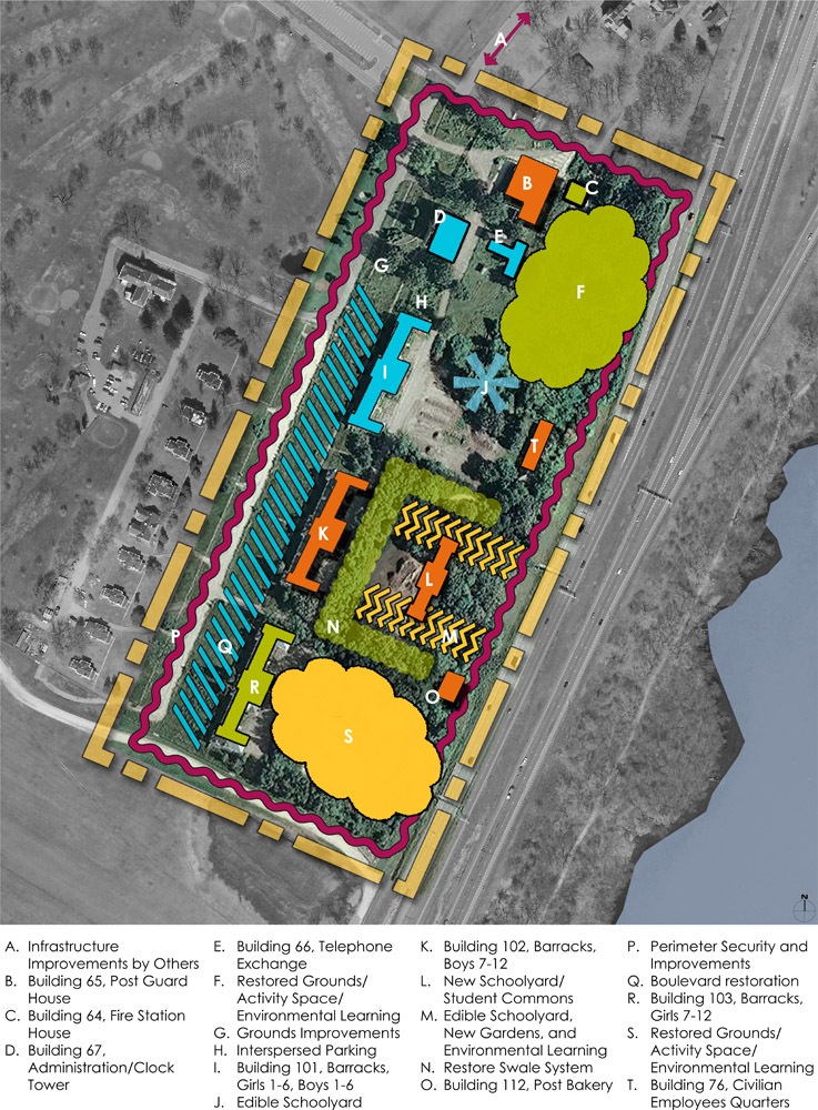 Collaborative Design Group completed initial planning and schematic design to reuse historic buildings at Fort Snelling’s Upper Post for the Upper Mississippi Academy, a school that would hold 1,382 preK-12 students upon completion. The campus would include student common areas, dining, kitchen, classrooms, outdoor learning labs, and administrative and support areas. The Student Commons Building was designed to be the only new structure on the campus. The design featured a timber frame structure and would house the kitchen and dining facility for 6th-12th grades. In addition, the building includes large seminar spaces for school and community use, as well as a Teaching Kitchen that opens into the Edible Schoolyard garden spaces and outdoor learning labs.